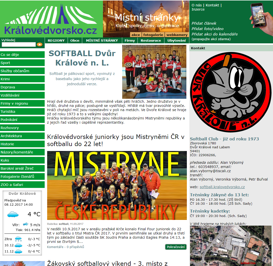 Místní stránky - Nová služba pro spolky, kluby, firmy, oddíly, školy