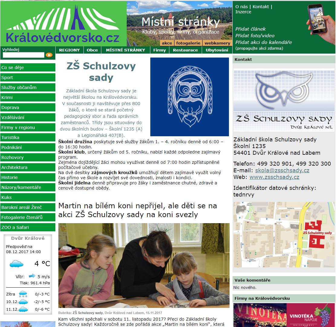 Místní stránky - Nová služba pro spolky, kluby, firmy, oddíly, školy