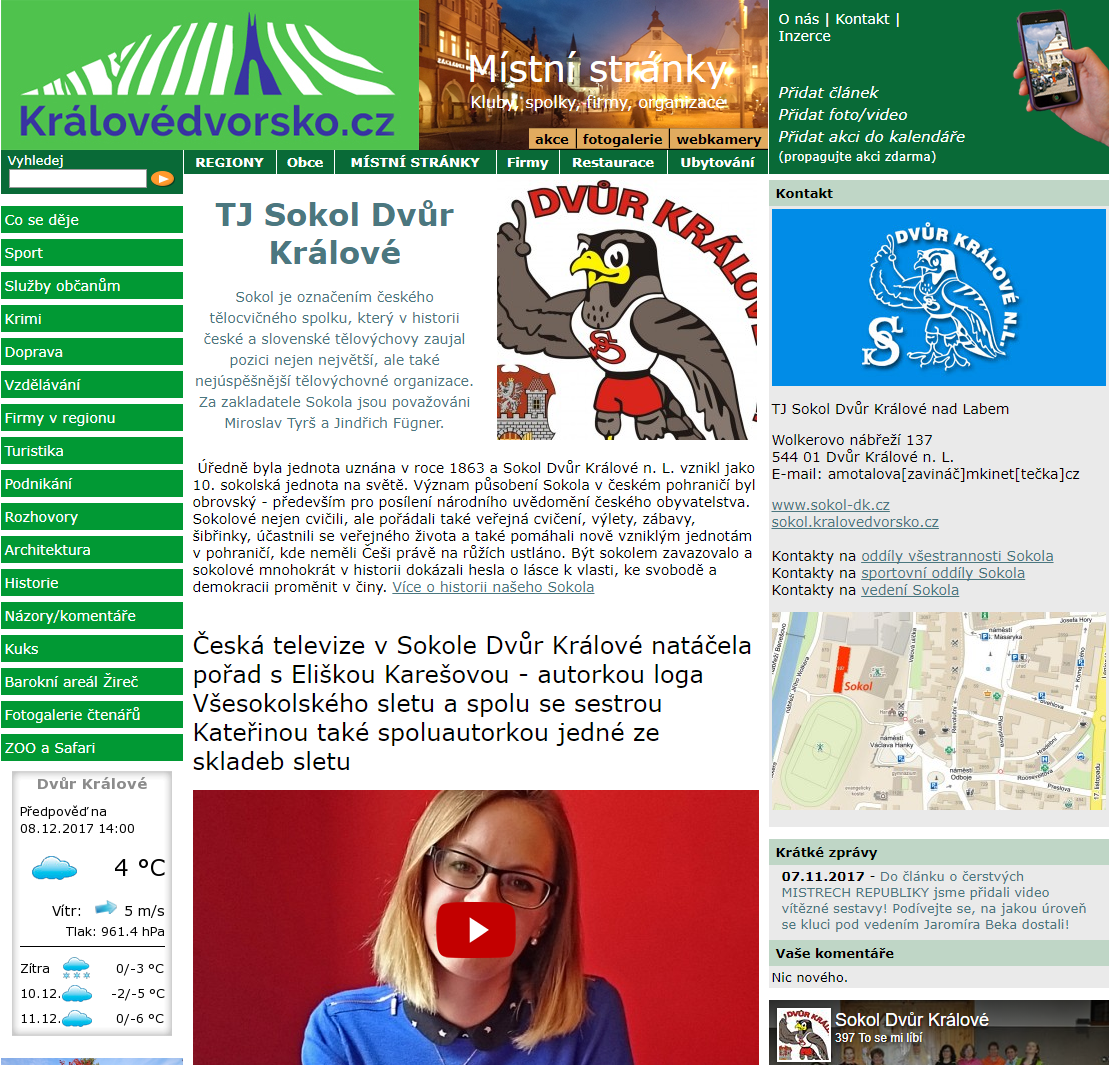Místní stránky - Nová služba pro spolky, kluby, firmy, oddíly, školy